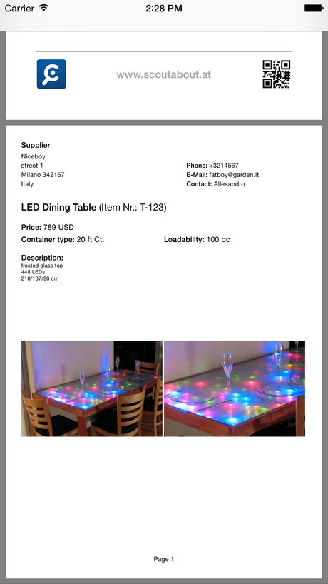• use the QR Code (needs internet connection) to import all information provided from supplier (if supplier also use scoutabout) and add pictures.